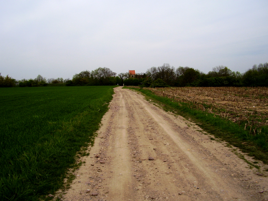 Alte slawische Grabsteine und knorrige Bäume sind noch zu sehen. Es duftet nach Löwenzahnblüten, die reichlich auf der Wiese stehen.